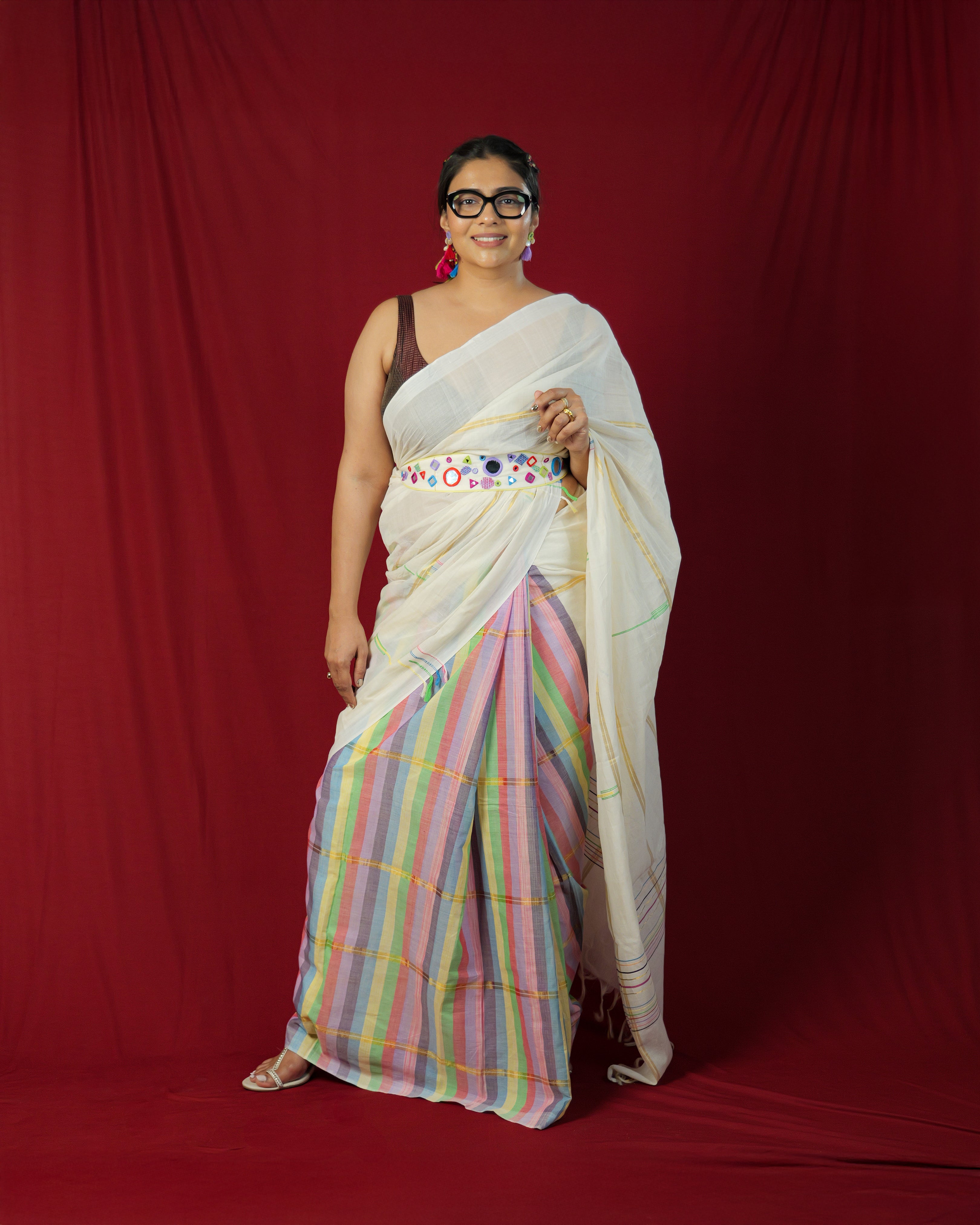 Parijaadham | Multicolor Close-Striped Kasavu Saree